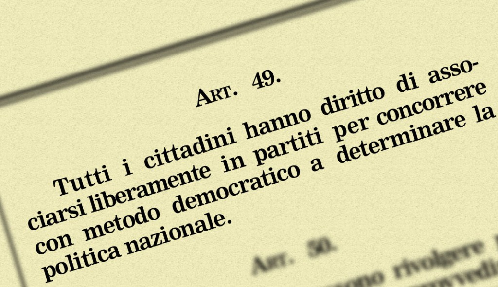 Eppure si tratta di un punto fondamentale, che riguarda l’intera vita concreta dell’ordinamento (non solo nei momenti elettorali) e l’azione dei soggetti chiamati a «concorrere con metodo democratico a determinare la politica nazionale»: così stabilisce l’articolo 49 della Costituzione italiana, mai modificato. Studiose e studiosi conoscono la genesi travagliata di questa disposizione così importante: il testo fu frutto del compromesso tra chi, in Assemblea costituente, credeva che i partiti dovessero applicare il principio democratico anche alla loro organizzazione e ai loro processi di decisione e chi, invece, temeva che permettere allo Stato di sindacare la “democrazia interna” dei partiti limitasse la libertà dei partiti, mettendo a rischio la sopravvivenza di alcuni di essi. Prevalse la seconda tesi, lasciando nel testo finale uno spiraglio per la prima: l’espressione «metodo democratico» era applicabile in astratto al confronto tra partiti come all’azione interna a ogni forza politica.
